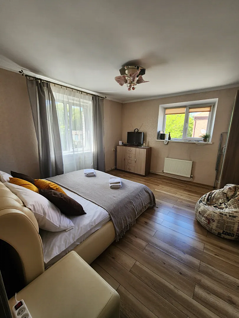 Поездом до ж/д вокзала г. Калининград, далее пройти 450 м до остановки общественного транспорта и на автобусе №40 двигаться до остановки «Улица Грига», далее 690 м до апартаментов.
