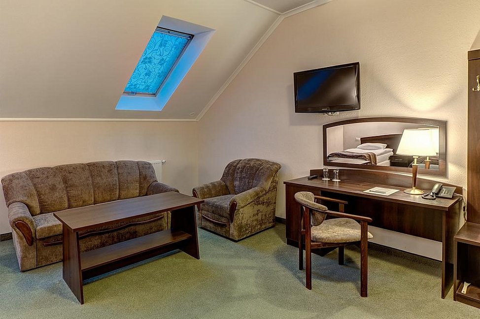 зеркало, кровати односпальные /одна двуспальная кровать, прикроватные тумбочки, стол, стул