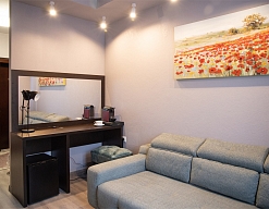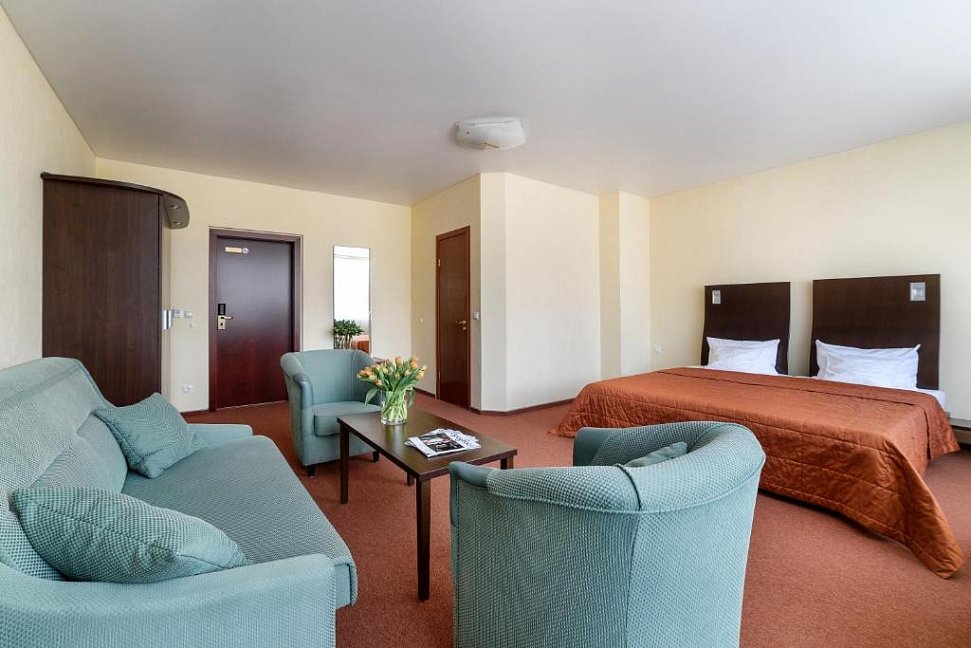 зеркало, ковровое покрытие, кресло, кровати односпальные /одна двуспальная кровать, набор мягкой мебели, прикроватные тумбочки, стол, столик журнальный, шкаф
