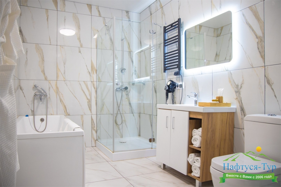 с душем, туалетные принадлежности, фен
