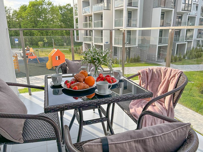Самолетом до аэропорта г. Калининград, далее на маршрутном такси №244э до остановки «Центральный рынок», далее пройти 75 м до остановки «Автовокзал» и на автобусе №125, 118 двигаться до остановки «Тихое Озеро», далее 1,75 км до апартаментов.