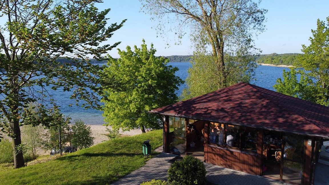 Самолетом до аэропорта г. Калининград, далее на автобусе №244э до остановки «Центральный Рынок», пройти 750 м, далее на автобусе №120 до остановки «Улица Лермонтова», далее 600 м до базы отдыха.