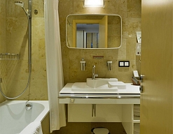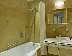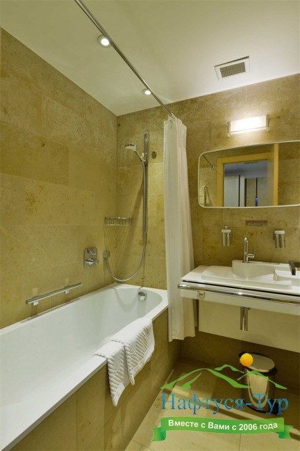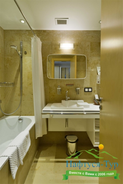 с ванной/душем, тапочки, туалетные принадлежности, фен, халат
