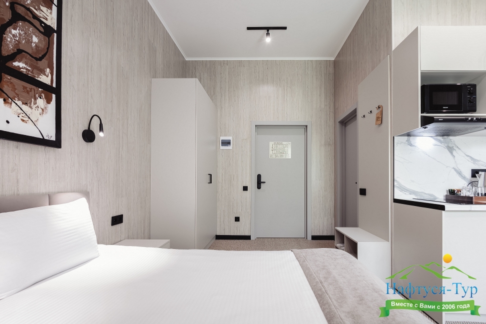 Самолетом до аэропорта Адлер, далее на автобусе №535,105,105с до остановки «Вертодром», затем пройти 256 м до апарт-отеля.