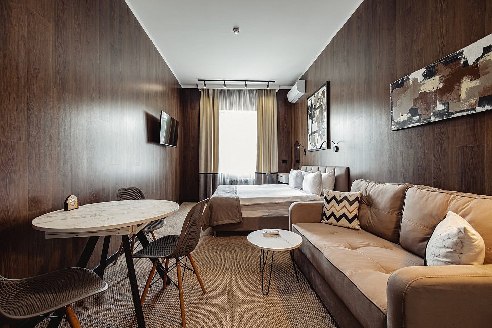 Поездом до ж/д станции Эсто-садок, далее на автобусе №105,105с,163,535 до остановки «Вертодром», затем пройти 256 м до апарт-отеля.