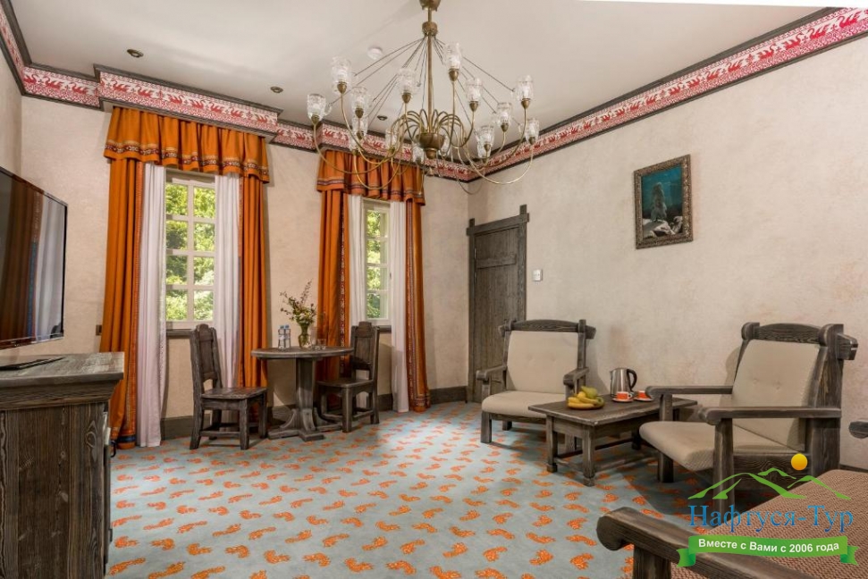 · Очень красивые и уютные номера. Всё чисто и аккуратно. Шум горной реки и красота окружающей архитектуры радуют с первых моментов нахождения в самом этно парке. Очень порадовала капсульная кофемашина, огромное спасибо от кофеманов :) в номерах есть все что нужно для путешествий "налегке" (халаты, тапочки, косметика, мочалки, зубные и прочии наборы).