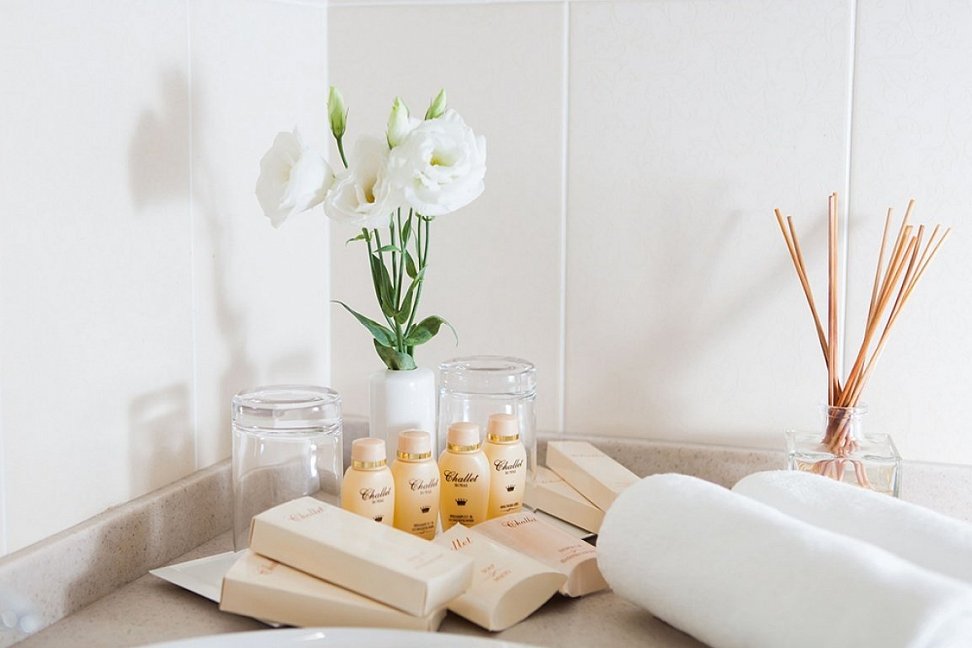 с душевой кабиной, туалетные принадлежности