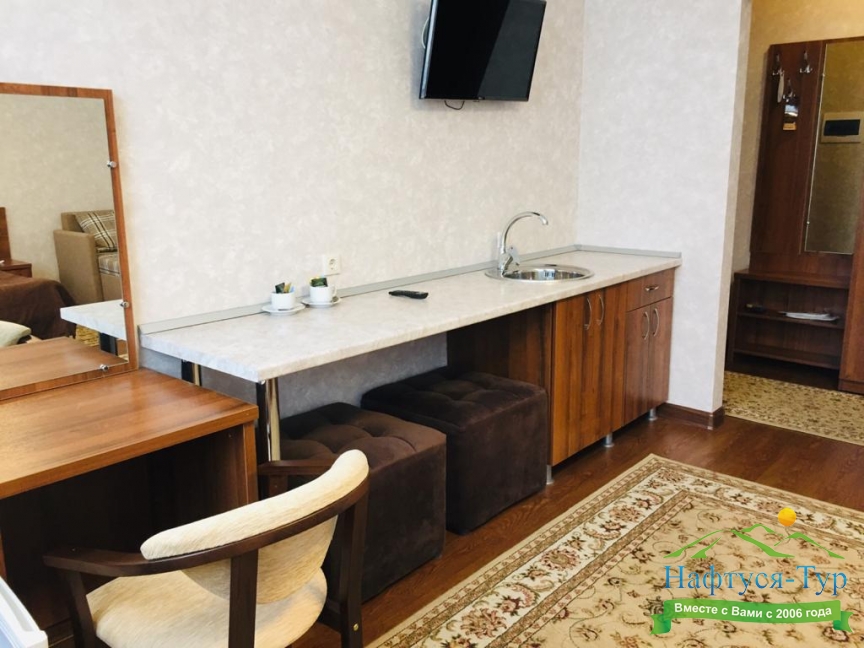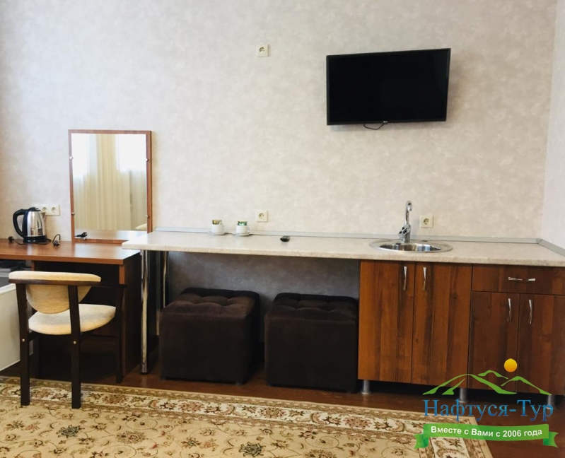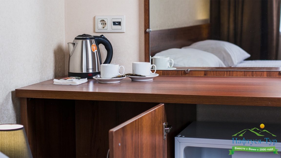 мини-холодильник, сплит-система, телевизор ЖК, чайный набор посуды, электрочайник