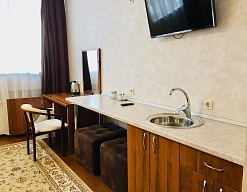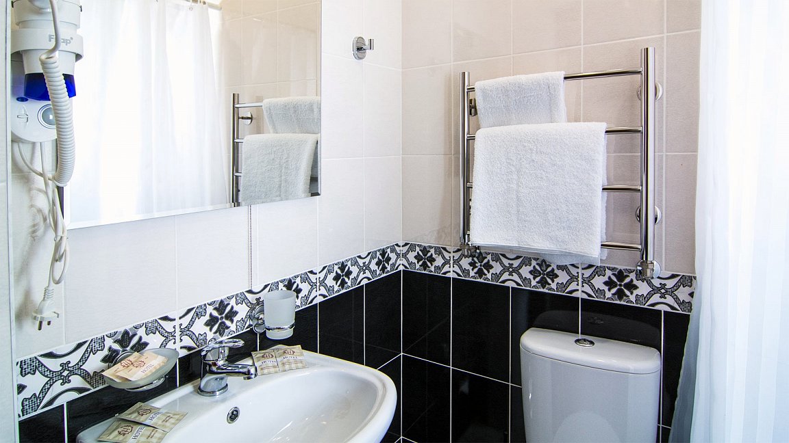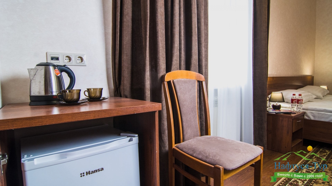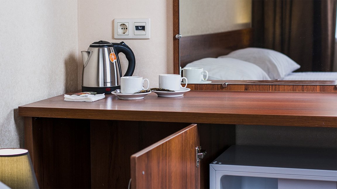 Месторасположение очень удобное. Номера чистые, с новым ремонтом, все красиво и удобно. Персонал приветливый. В номере есть фен, чайник, халат, посуда, чай, кофе и сахар.