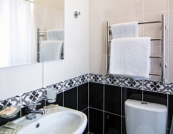 с ванной/душем, тапочки, туалетные принадлежности, фен, халат