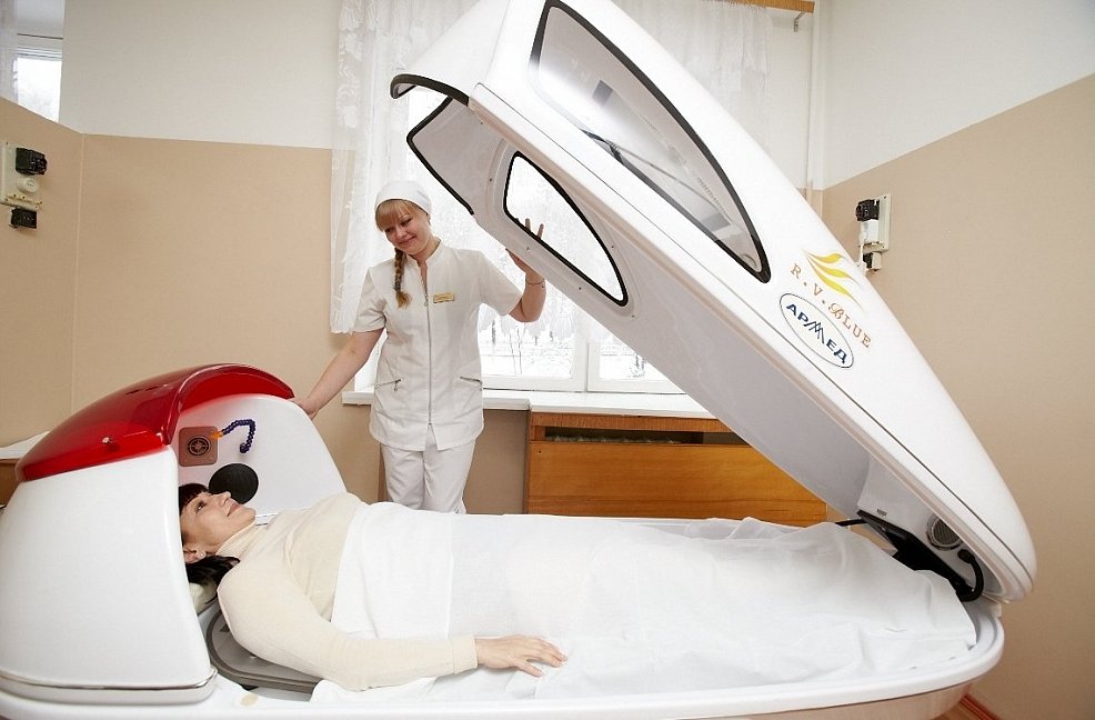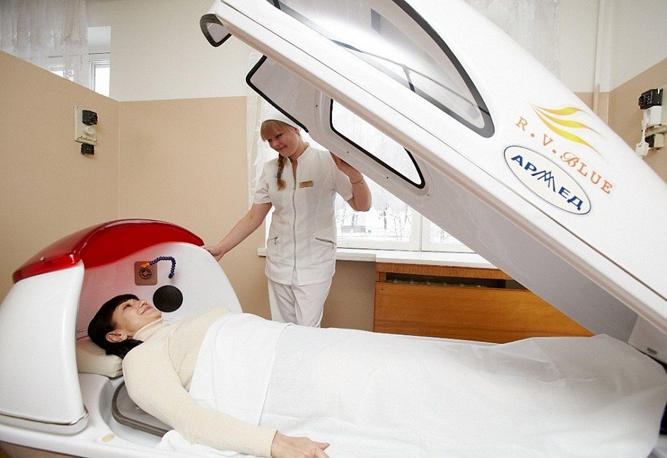 Лечебная база в санатории занимает 3 этажа, лечебные процедуры очень разнообразны, есть центр "Реабилитации беременных".