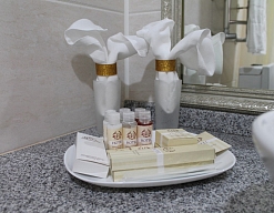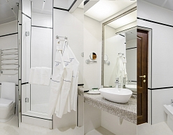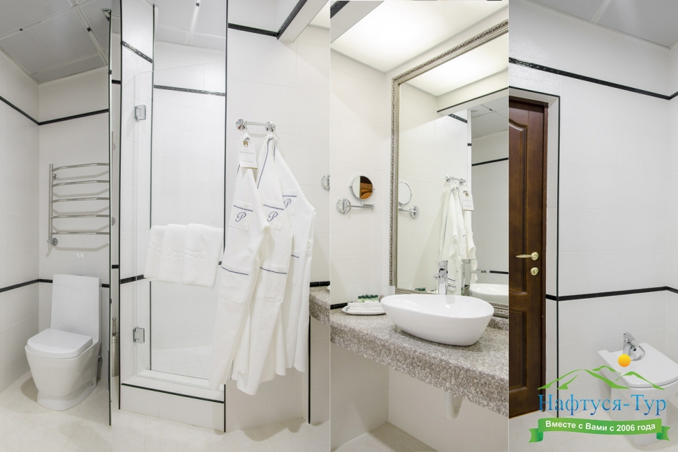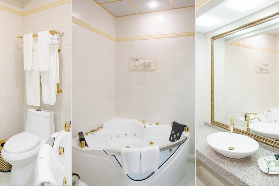 2 санузла, с джакузи, с душевой кабиной, тапочки, туалетные принадлежности, фен, халат