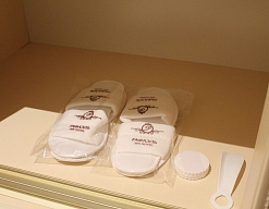 с душевой кабиной, тапочки, туалетные принадлежности, фен, халат
