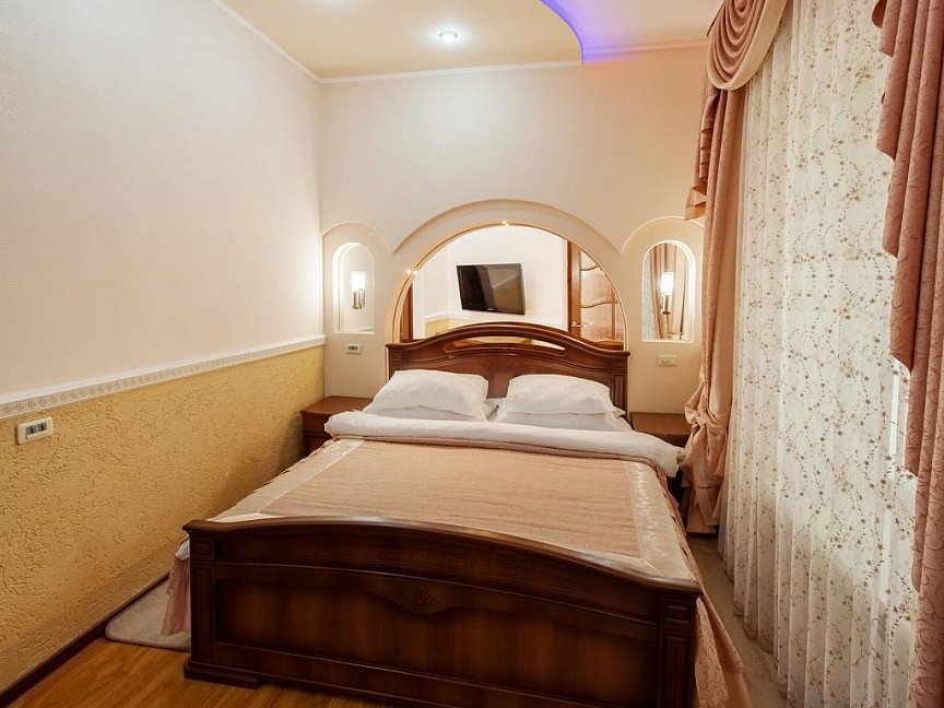 Номер Стандартный с ремонтом: небольшой по площади, но очень уютный и с хорошей мебелью, вид с балкона на горы был просто потрясающим!
