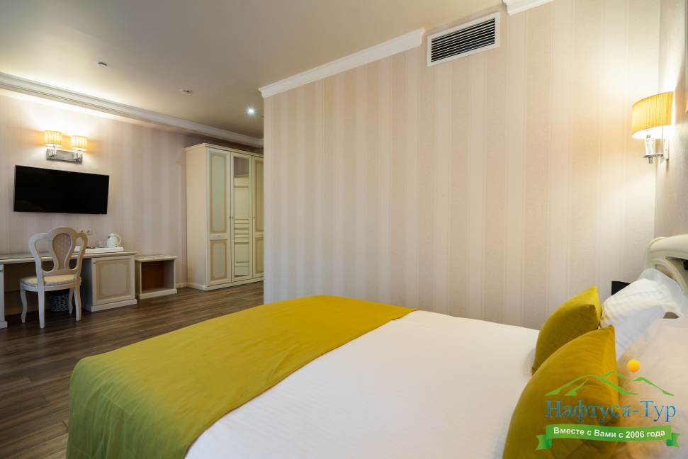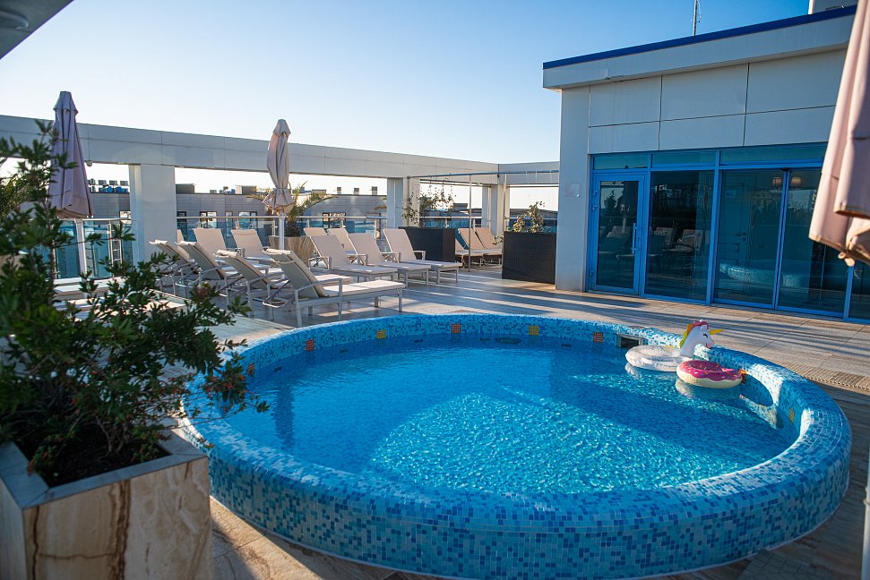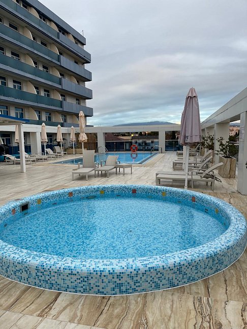 Отдыхали в конце июля, жили в 2-х комнатном семейном номере-просто супер, огромный, светлый, красивый, из такого номера даже выходить не хотелось))), море очень близко, бассейн тёплый, не большой, но и людей там всегда было не много, тихо, комфортно.