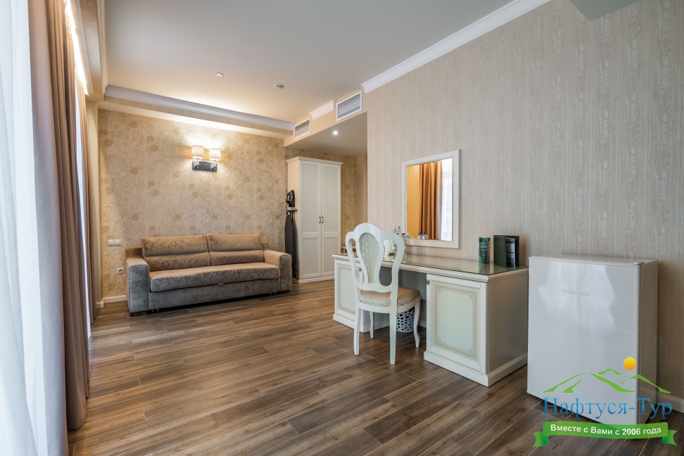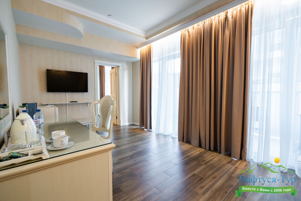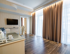 В комнате было 2 больших балкона, что очень приятно, панорамные окна с видом на море, к сожалению, сейчас там проходит стройка и вид немного портится