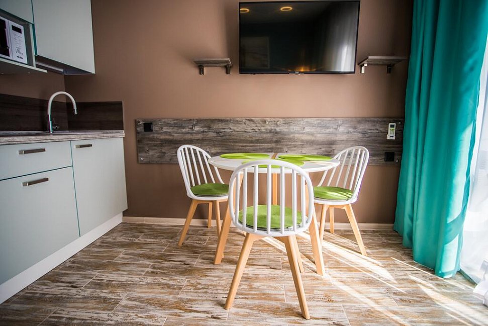 Понравилось · Новые небольшие апартаменты, с балконом для двоих, маленькой кухонной, обеденной группой.