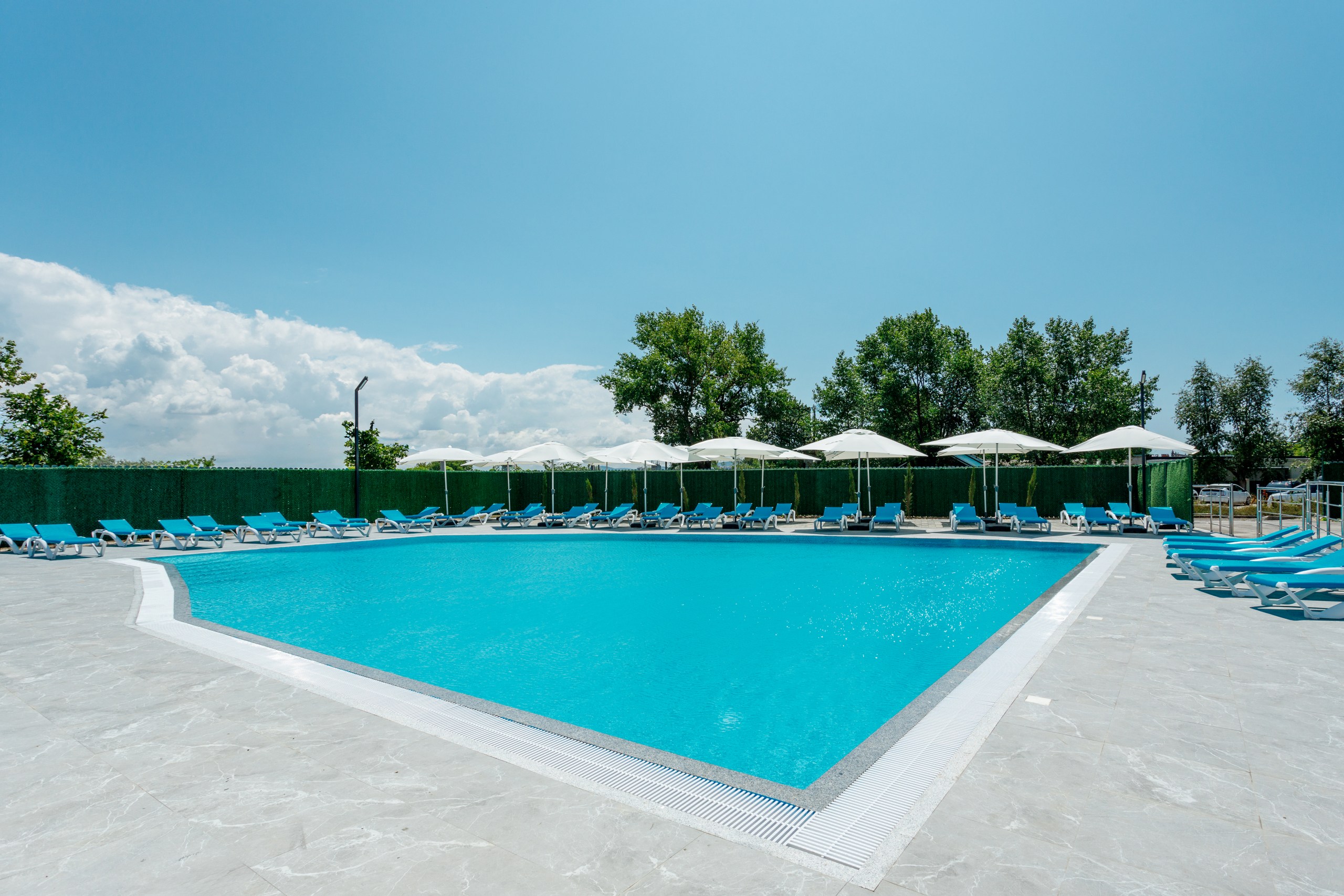 Представлять отели и гостиницы Анапы с бассейном с подогревом, работающие в формате «все включено», мы считаем необходимым с одного из самых новых и стольных заведений. По состоянию на 2019 год всего пару лет прошло с того момента, как первых гостей принял анапский ОТЕЛЬ «BETON BRUT» («БЕТОН БРЮТ»). Его стилистика – это столь популярный сегодня лофт, самую суть которого отлично раскрывает название гостиницы. Про достоинства «Бетон Брют» можно рассказывать очень долго, но, учитывая направленность этой страницы нашего официального сайта, сосредоточимся на бассейнах отеля. Во время купального сезона (с мая по сентябрь) к вашим услугам подогреваемый открытый бассейн площадью 850 кв. метров. Круглогодично функционирует большой крытый бассейн. Безусловно, в бассейнах созданы детские зоны.