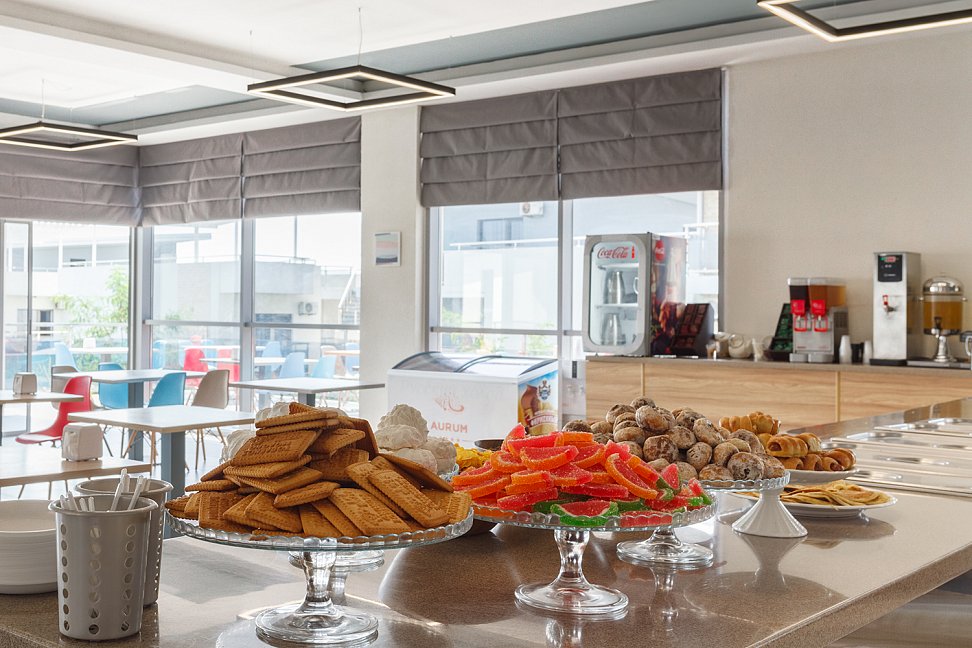 Проживание, питание по системе «ALL INCLUSIVE»: 3-х разовое питание по системе «Шведский стол», бар с алкогольными и безалкогольными напитками, кафе промежуточного питания.