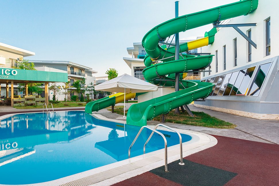 Открытый бассейн с двумя аквагорками для гостей старше 12 лет;