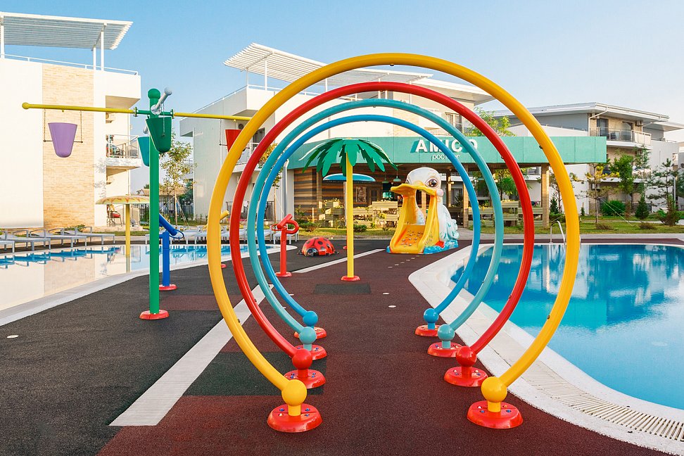 Услуги для детей: детская анимация, детская игровая комната (по возрастам), детская площадка, детский открытый бассейн (подогреваемый, 14*6 м., глубина 60 см., 2 аквагорки.), детское меню.