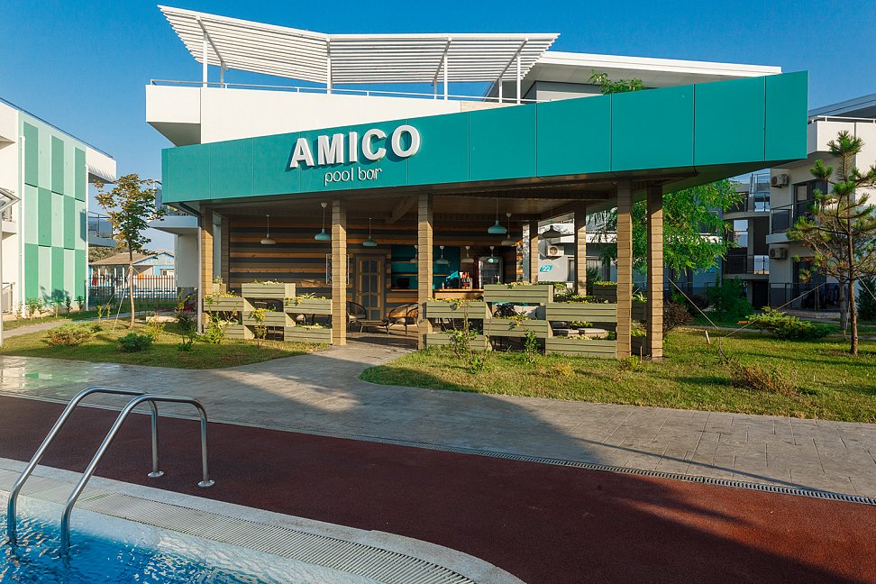 Платно: бар (pool bar Amico), лобби-бар, ресторан ("5 сторон света") Бассейны и аквапарки крытый бассейн (в SPA-центре), открытый бассейн (подогреваемый, 30*8 м, глубина 150 см. Spray Park - водный развлекательный комплекс.)