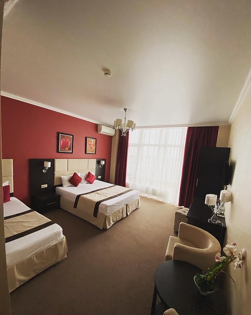 Отель очень красивый, оформлено всё очень стильно, со вкусом, дизайнеры постарались. Чистые, комфортные номера, хорошего качества постельное бельё, кондиционер, холодильник, отличная мебель, прекрасный ремонт.