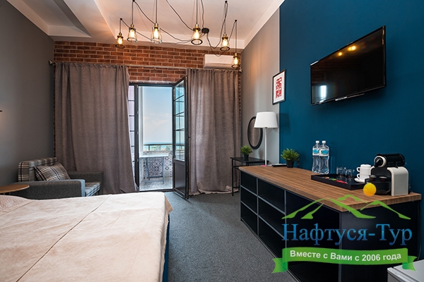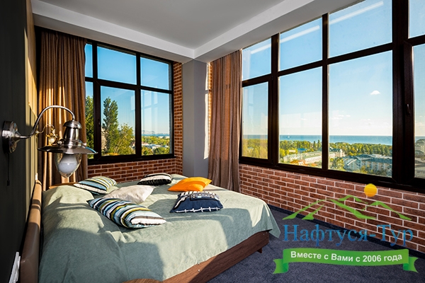 2-мест.(разм. в 3-мест.) 2-комн. люкс с панорамными окнами (боковой вид на море)