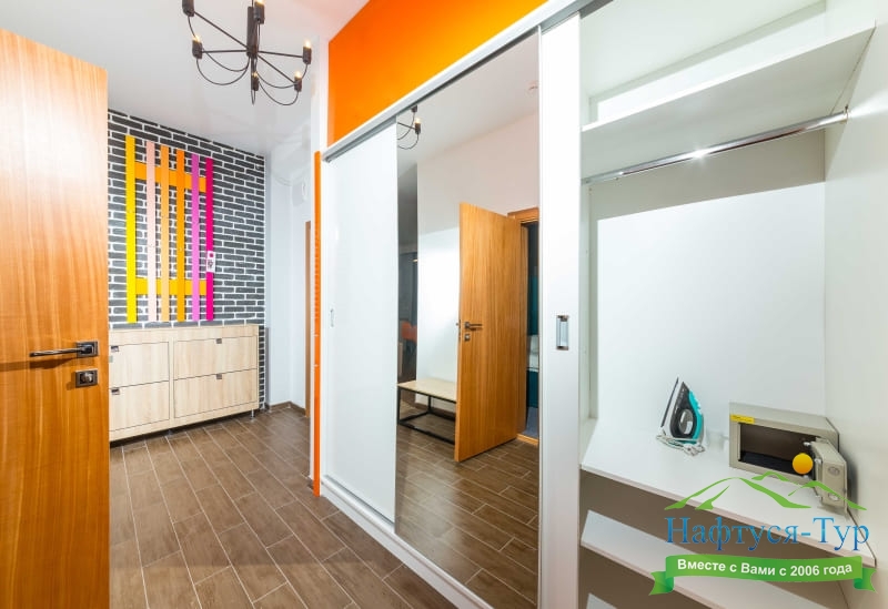 гладильная доска, сейф, сплит-система, телевизор ЖК, телефон, утюг, холодильник, электрочайник