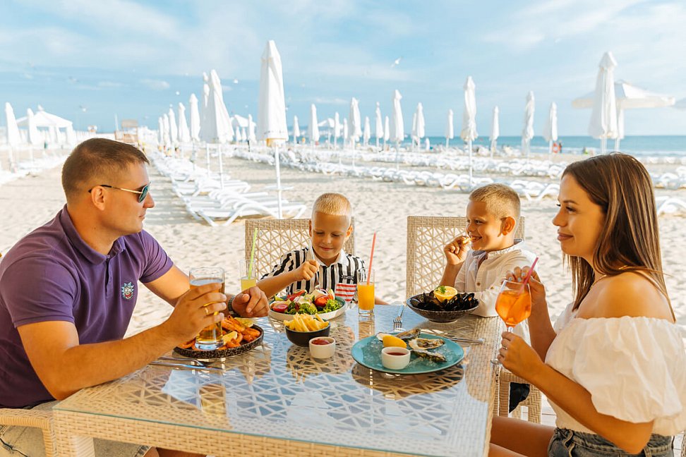 Районы "Рассвет", "Волна", "Горизонт" работают с 28 апреля по 30 сентября, а главный корпус отеля "Дюна" работает круглогодично.