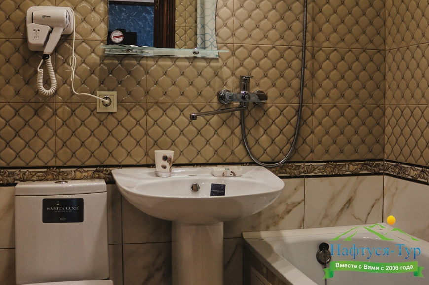 с ванной, туалетные принадлежности, фен