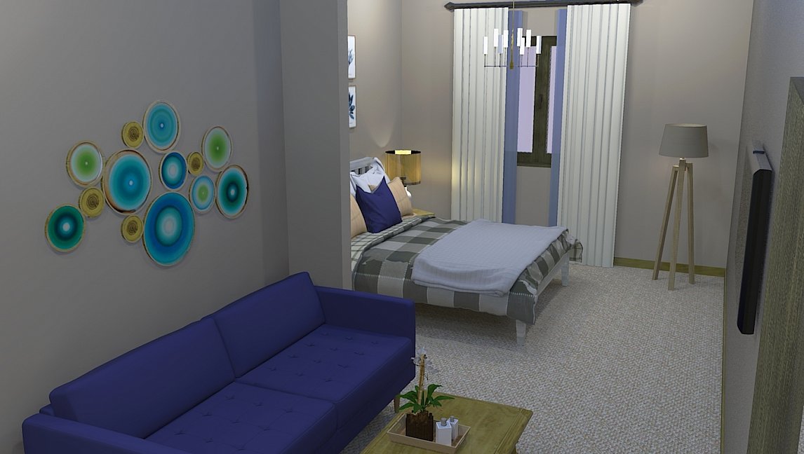 вешалка, зеркало, кресло-кровать, кровать двуспальная, прикроватные тумбочки, стол, стулья, шкаф