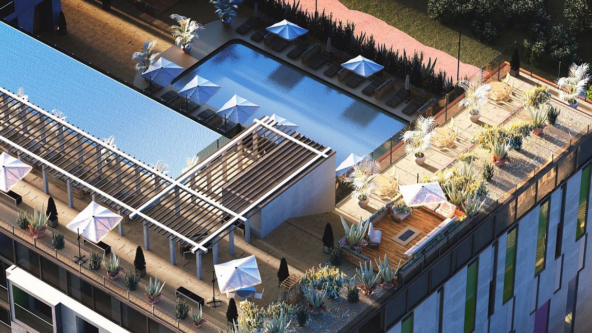 На крыше отеля имеется бассейн с панорамным видом на море, огороженной детской зоной.