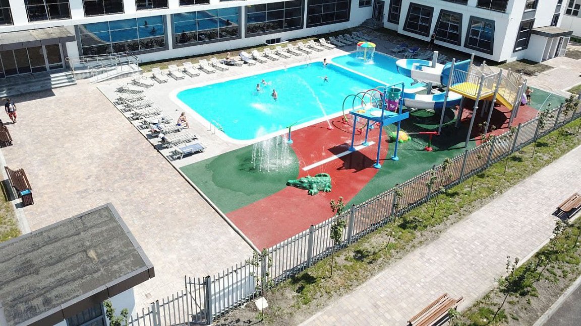 На территории Отеля имеются взрослый и детский подогреваемые бассейны с пресной водой, аквагоркой для детей и spray park. В течение дня в аквазоне проводятся анимационные мероприятия. Территория бассейнов оборудована шезлонгами и теневыми навесами.