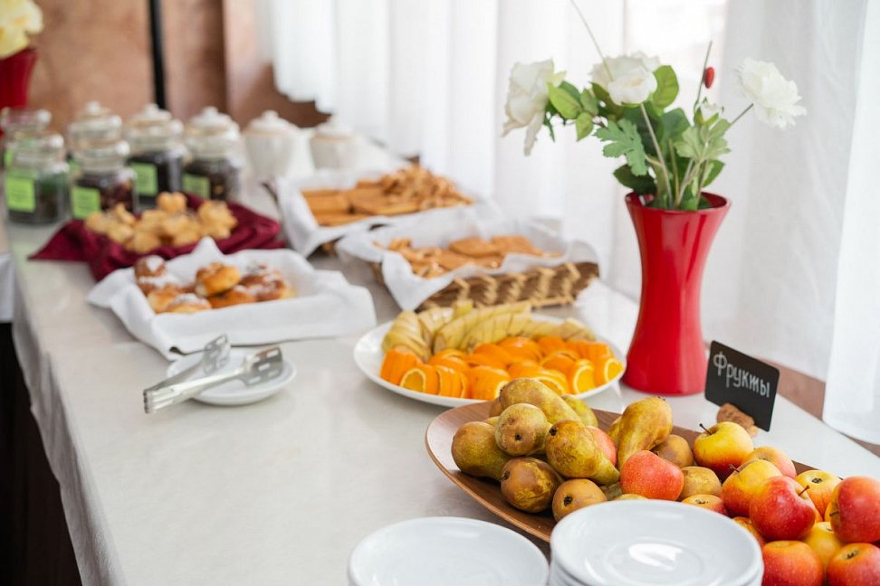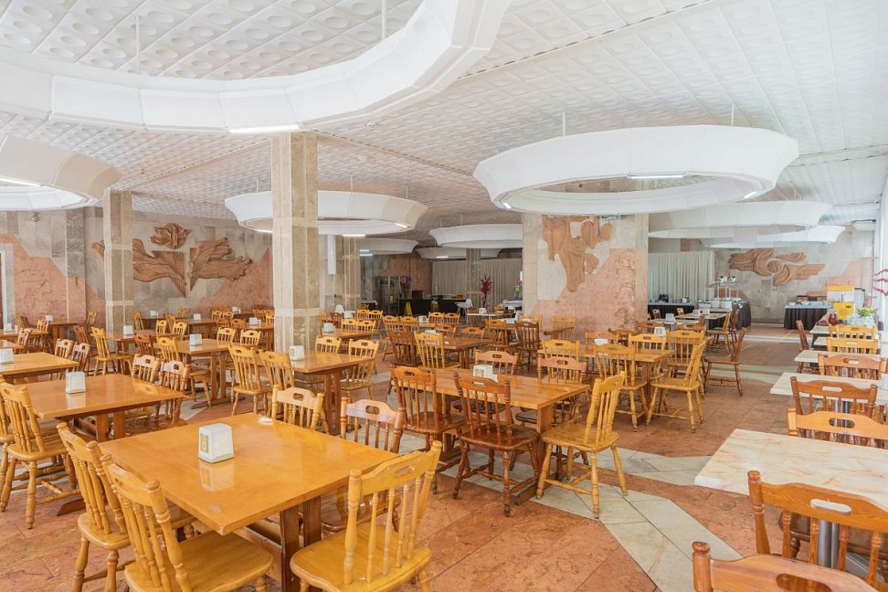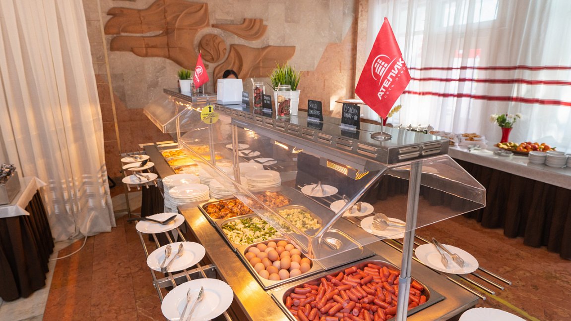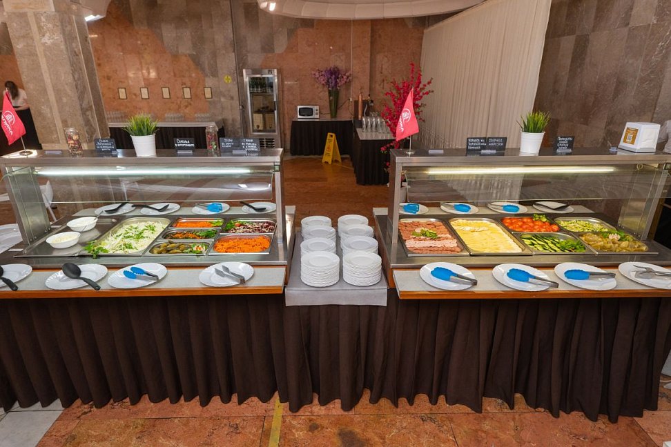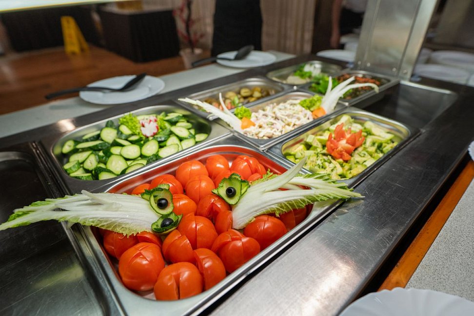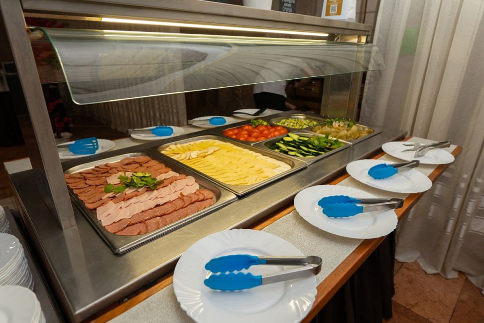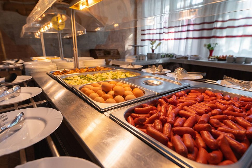 В ресторане «Компас» предлагает 3-х разовое питание по системе «шведский стол».