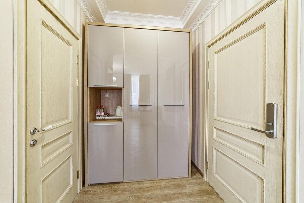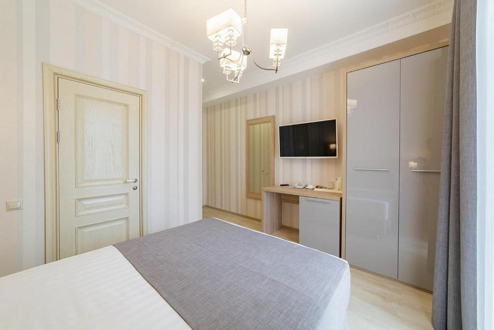 2-местный в корпусе (макс. 2+1 чел., телевизор, кондиционер, душ, фен, холодильник, туалетные принадлежности, балкон, сейф, телефон, 2-спальная кровать, мини-бар (платно)). Доп. место - диван, может быть установлен без ограничения по возрасту.