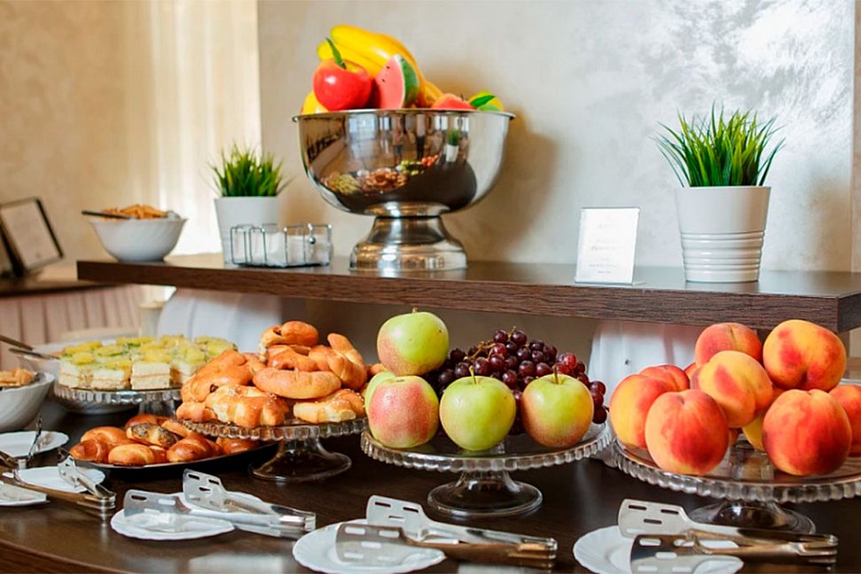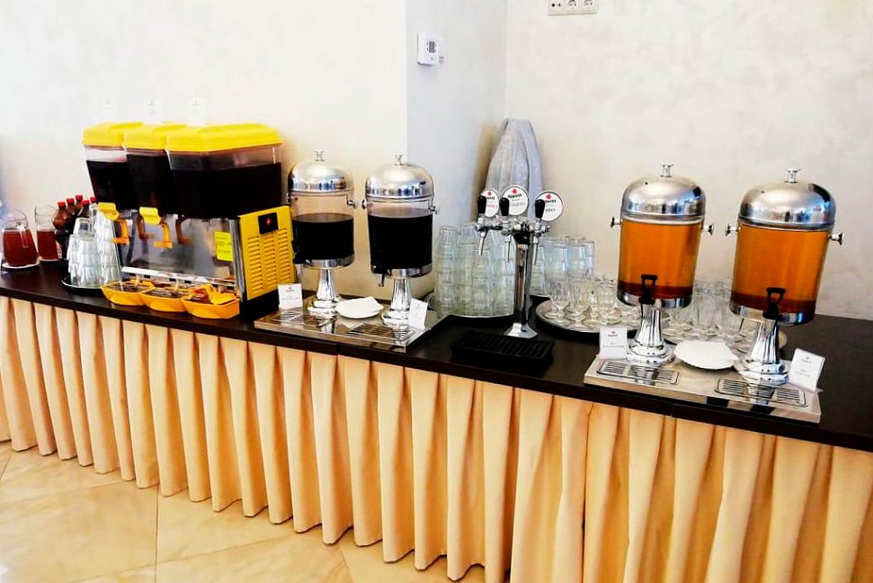 - питание 3-х разовое «шведский стол» + промежуточное питание с 10:00-19:00 - прохладительный напитки, закуски, вино