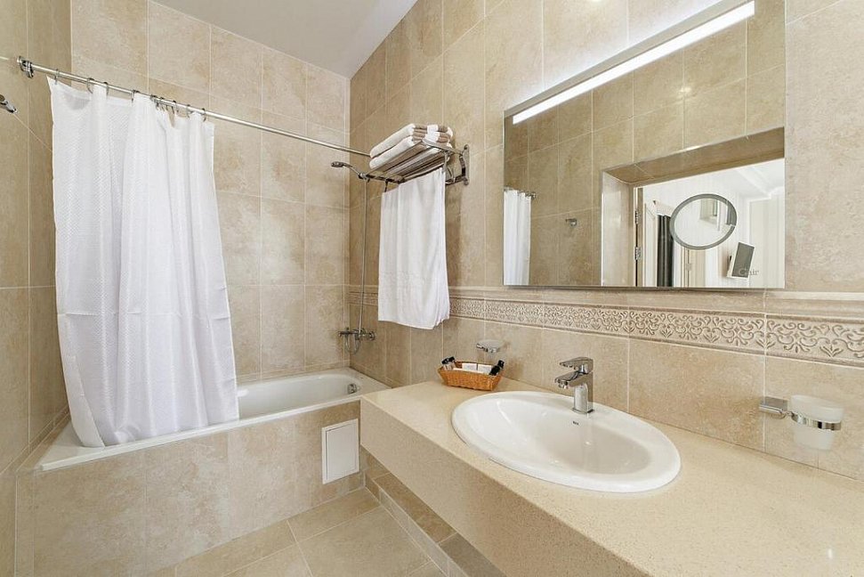 2-местный в коттедже (макс. 2+1 чел., телевизор, кондиционер, душ, фен, холодильник, туалетные принадлежности, балкон, сейф, телефон, 2-спальная кровать, мини-бар (платно)). Доп. место - диван, может быть установлен без ограничения по возрасту.