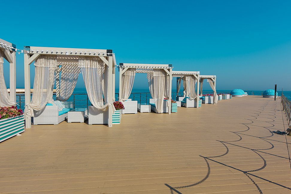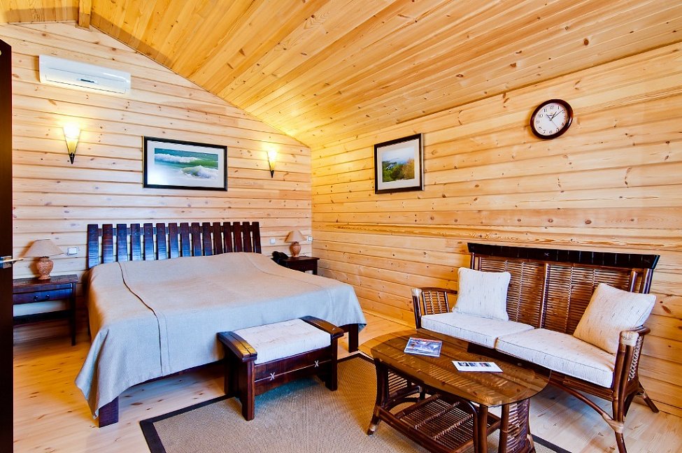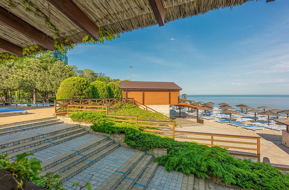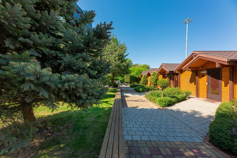 Отель практически расположен прямо на пляже - это его уникальная особенность от других отелей. Есть люди, которые уже 3-й год подряд приезжают сюда и говорят только позитивные вещи об отеле. Здесь мило, чисто и уютно. Мы в отеле впервые, но также в восторге!!! Главным достоинством является месторасположение - море, пляж совсем "под носом". За этим собственно говоря сюда и приехали. Домики уютные и комфортабельные, располагают к тому, чтобы остаться здесь подольше. Понравился дизайн самых домиков. На территории растут кедры, много цветов, удачно сделана парковка, свежий воздух, отличный запах деревьев. Персонал очень старательный и добродушный. Замечательные завтраки с прекрасной сервировкой. Каждое утро в районе буйков, наблюдали дельфинов. Такого отеля в Анапе точно не найти. Так что езжайте сюда побыстрее. Спасибо всем за тёплый приём, приятную атмосферу, доброжелательное отношение к гостью. Обязательно ждите нас ещё!!!