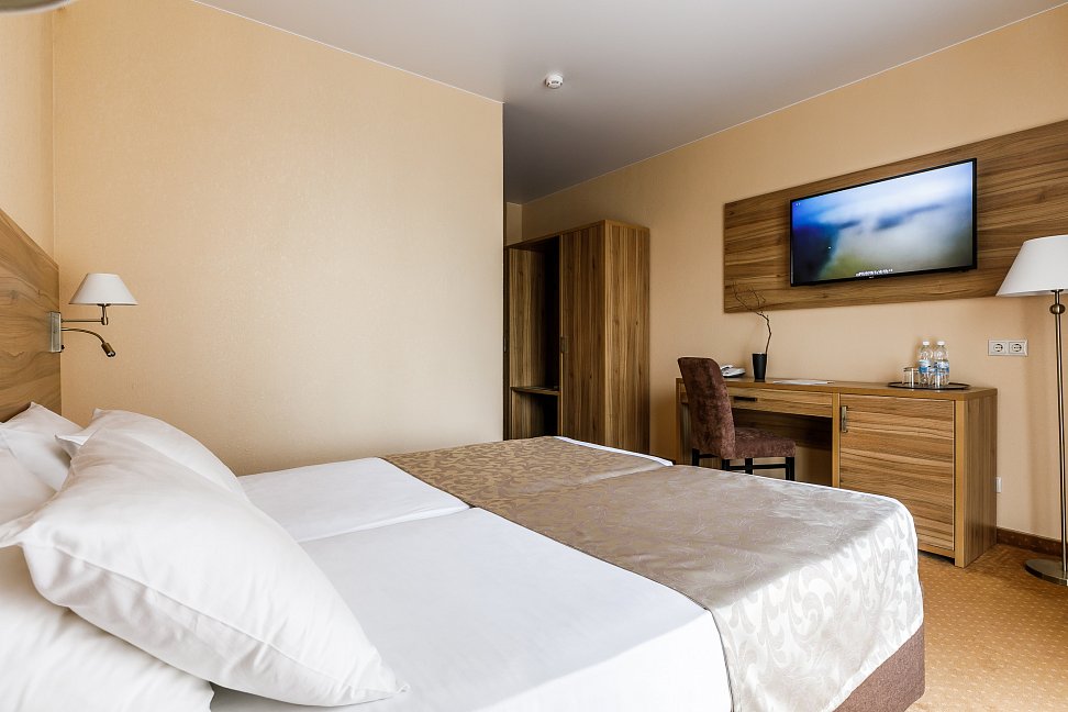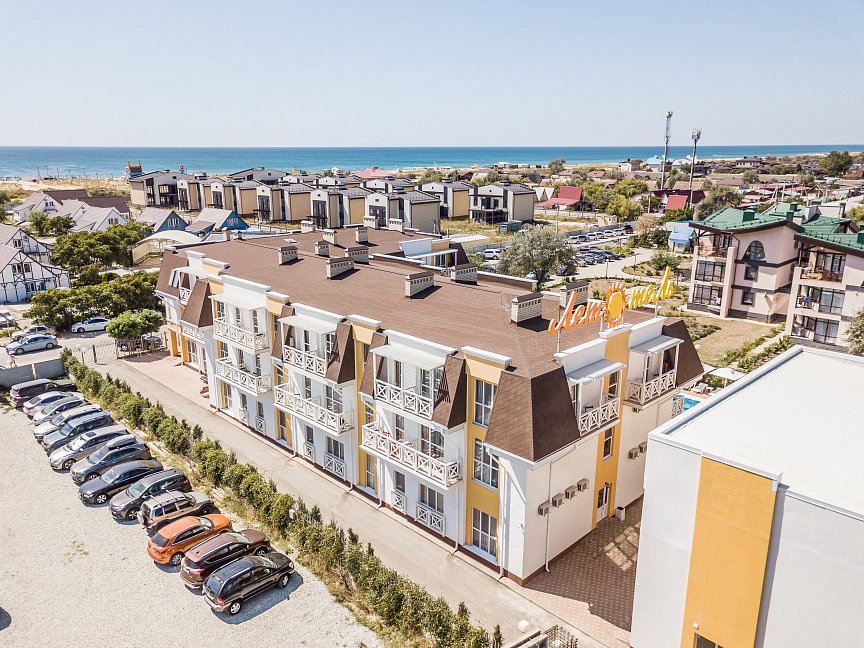 Поездом до ж/д вокзала г. Анапа, далее на рейсовом автобусе №106 до остановки «Центральный пляж», далее пройти пешком 220 м до отеля.