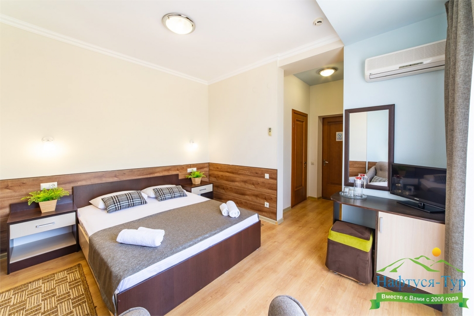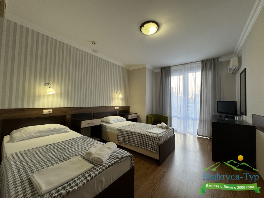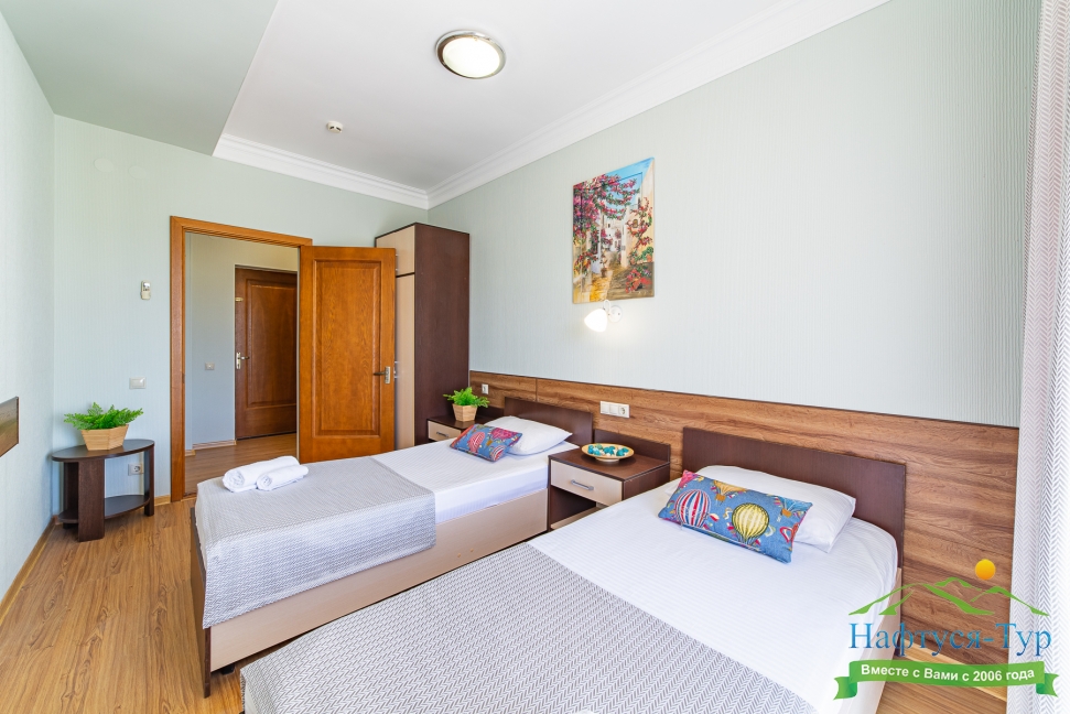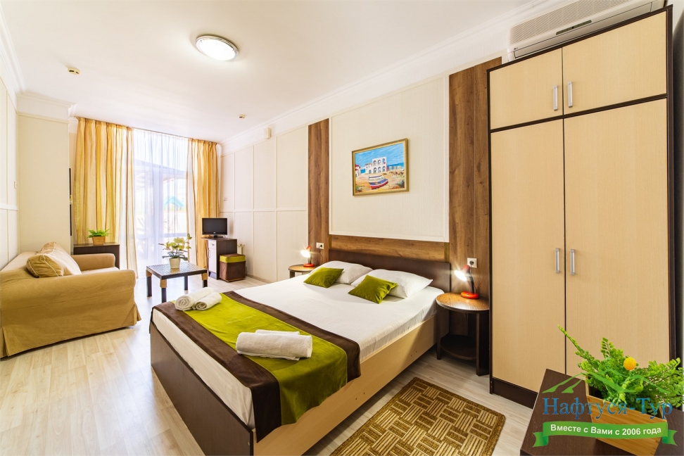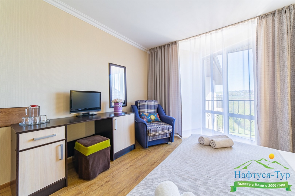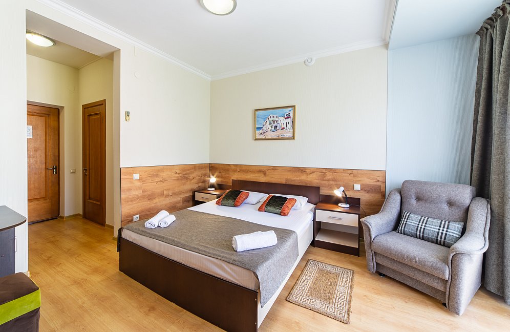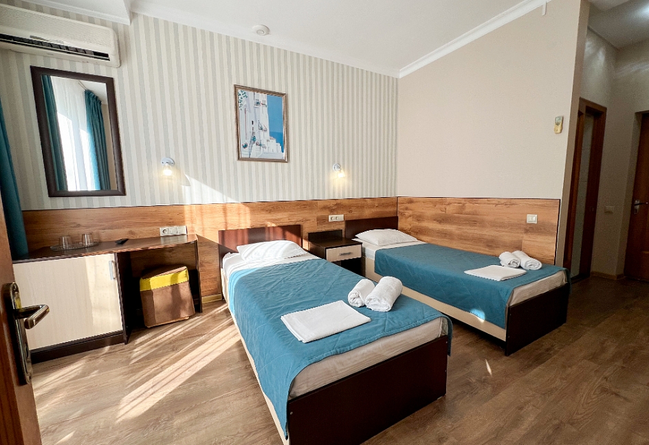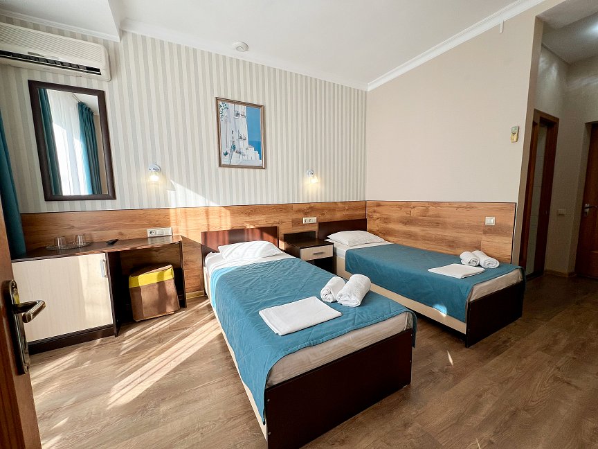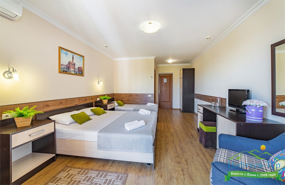 Самолетом до аэропорта г. Анапы, далее на маршрутном такси №113 до остановки «Аквапарк», далее пройти пешком 370 м до отеля.