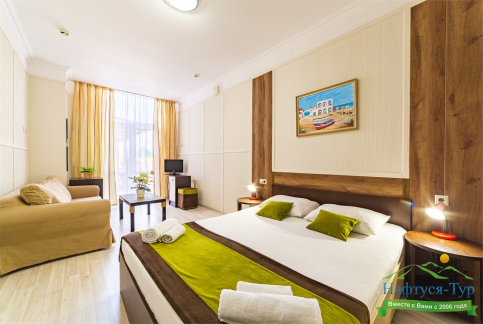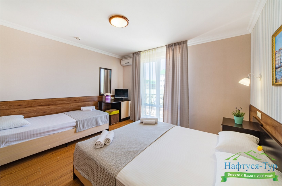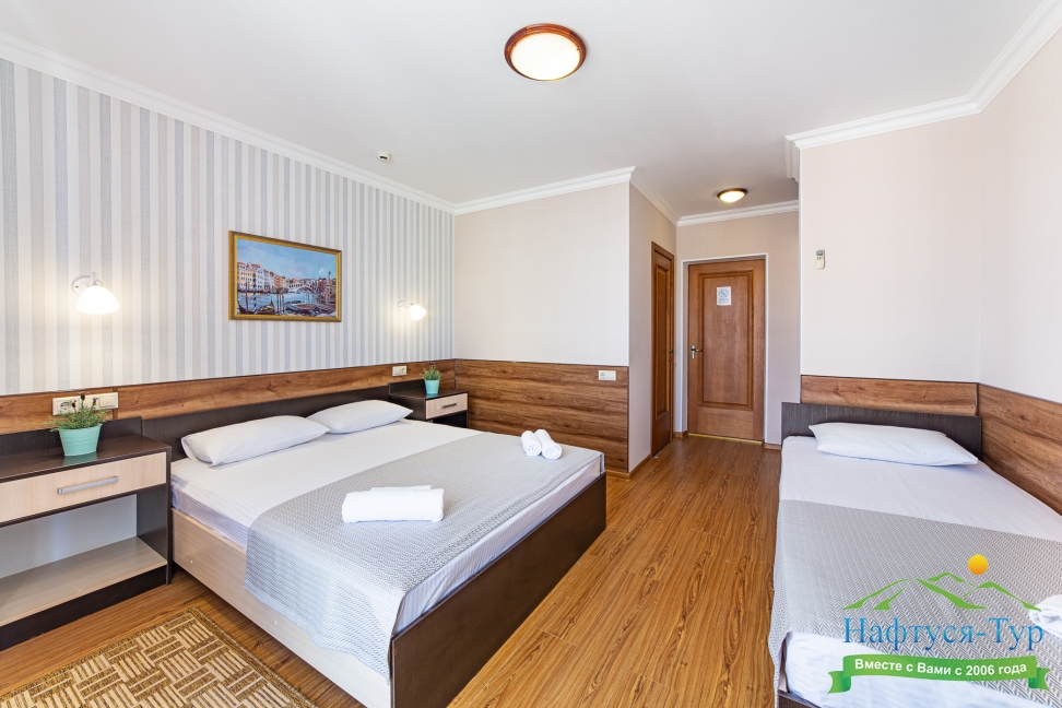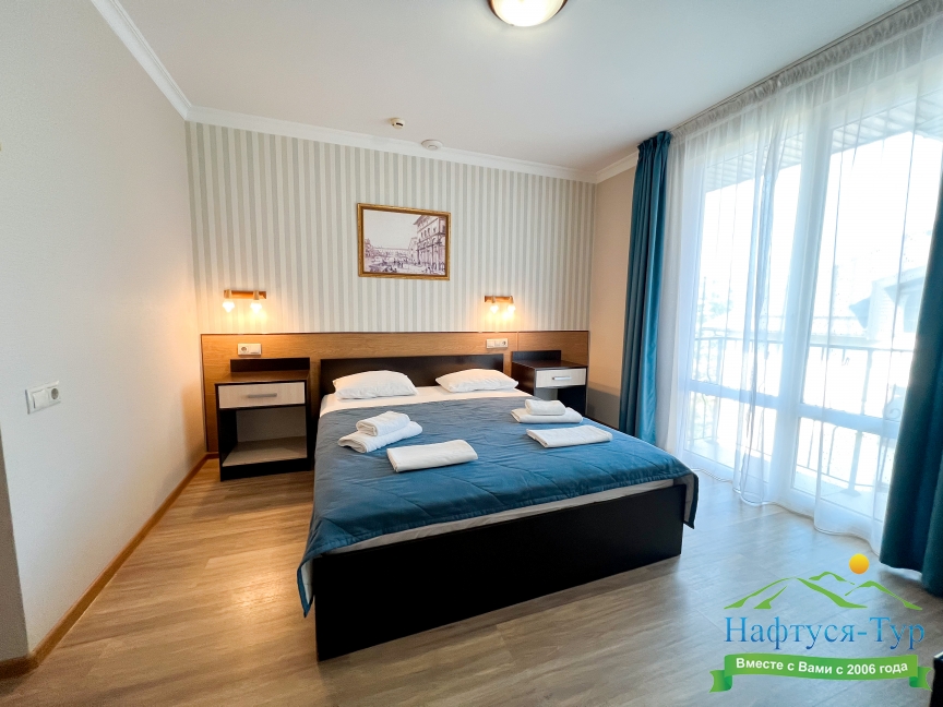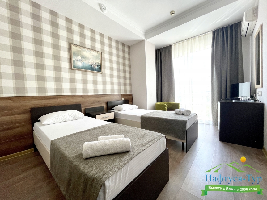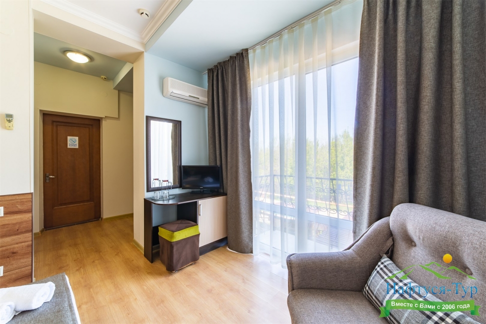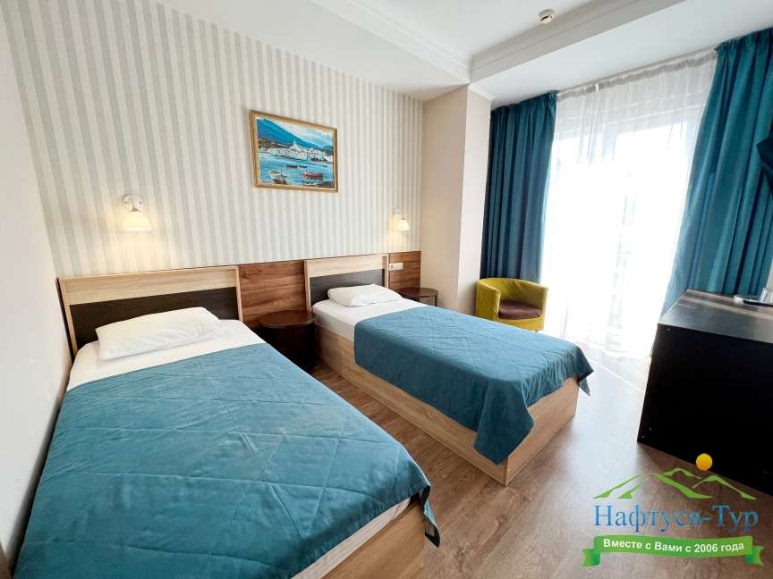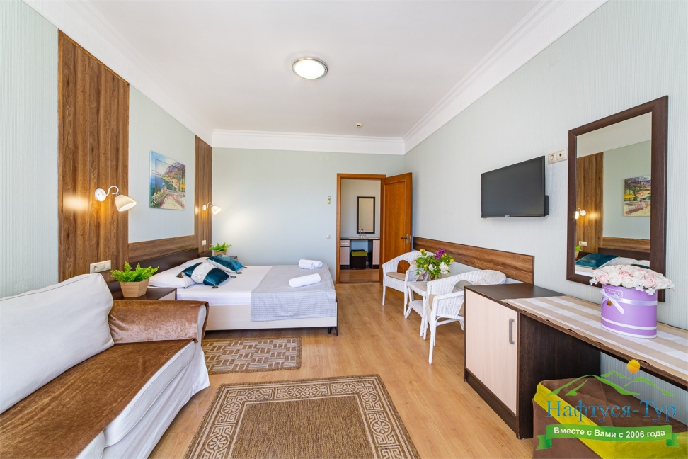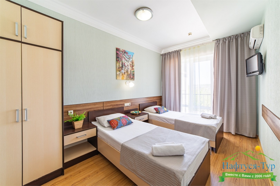 Самолетом до аэропорта г. Анапы, далее на маршрутном такси №113 до остановки «Аквапарк», далее пройти пешком 370 м до отеля.