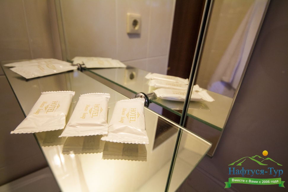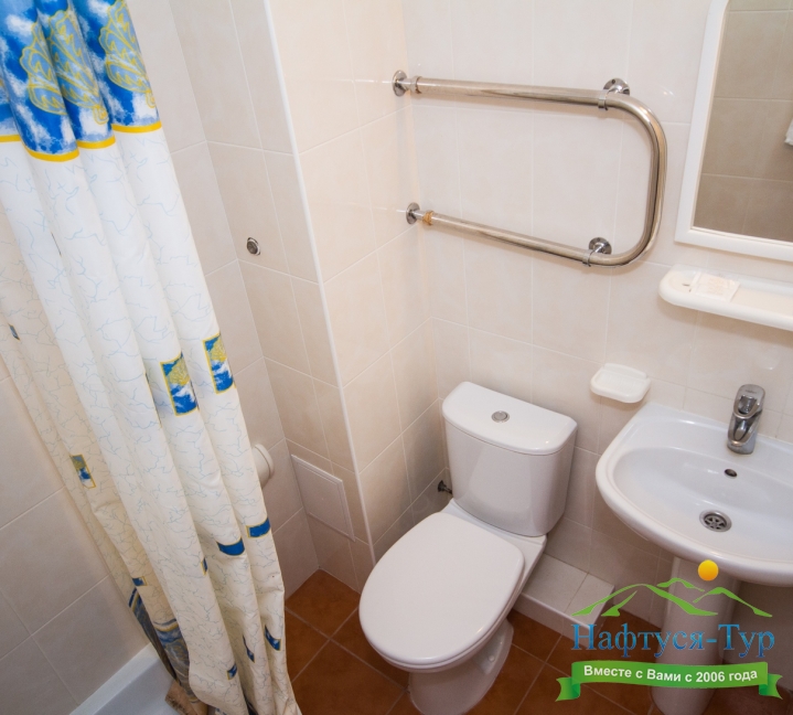 с душем (поддон), туалетные принадлежности