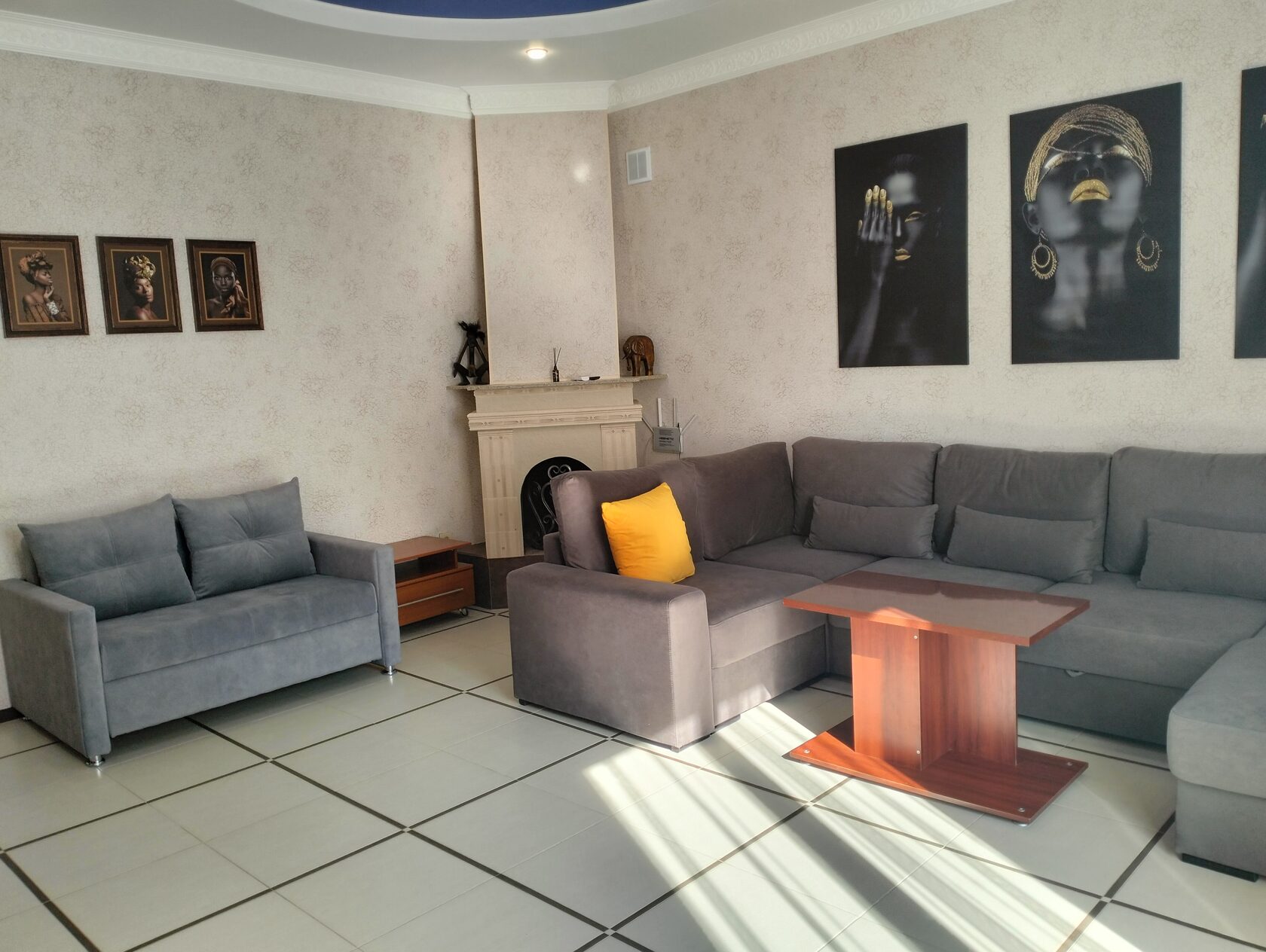 вешалка, диван раскладной, зеркало, кровати односпальные, кровать двуспальная, прикроватные тумбочки, пуфик, стол, столик журнальный, шкаф