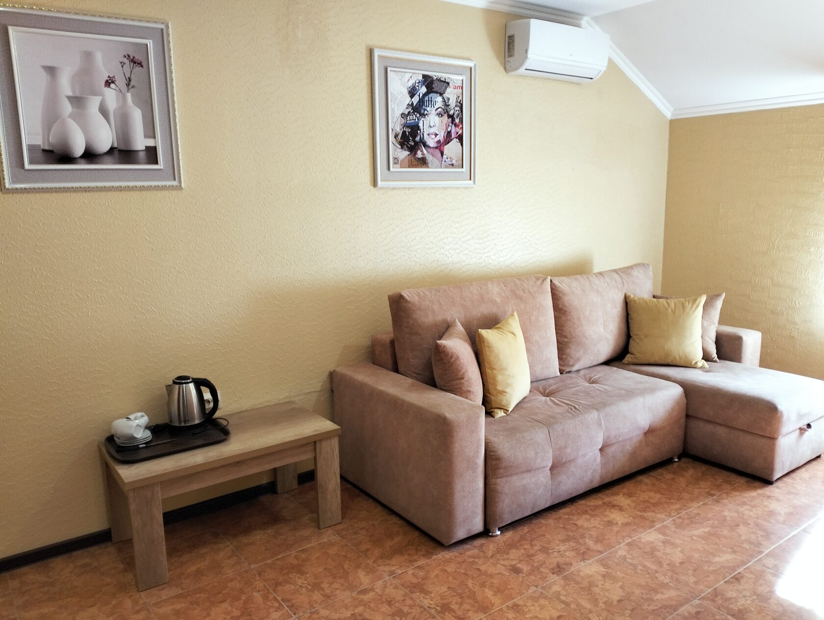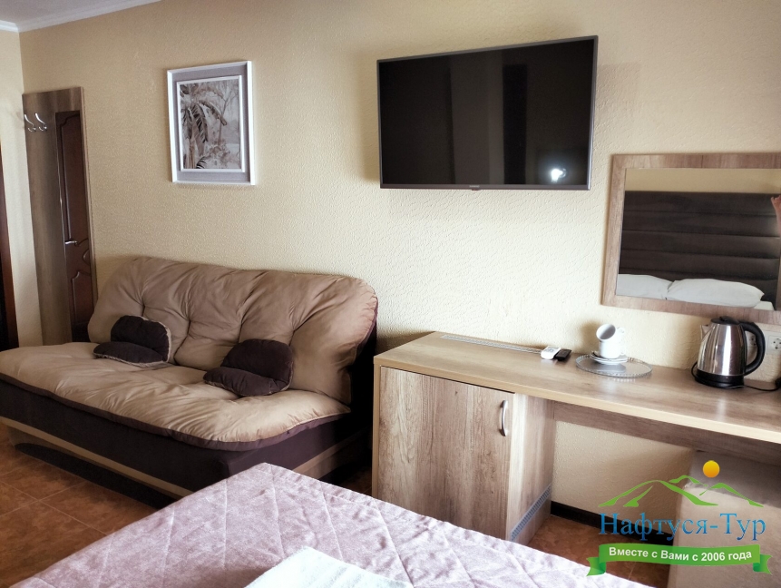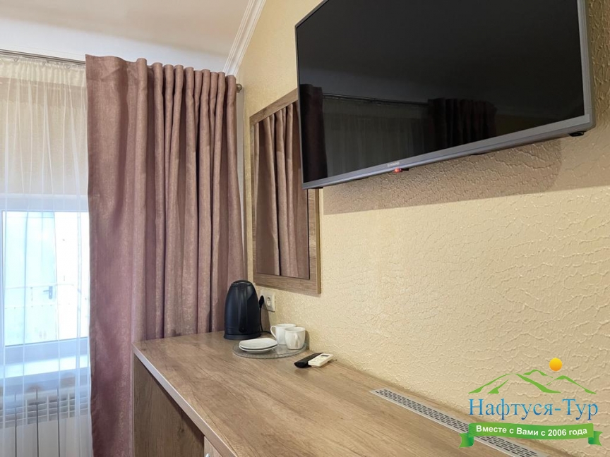 кондиционер, мини-холодильник, телевизор, чайный набор посуды, электрочайник