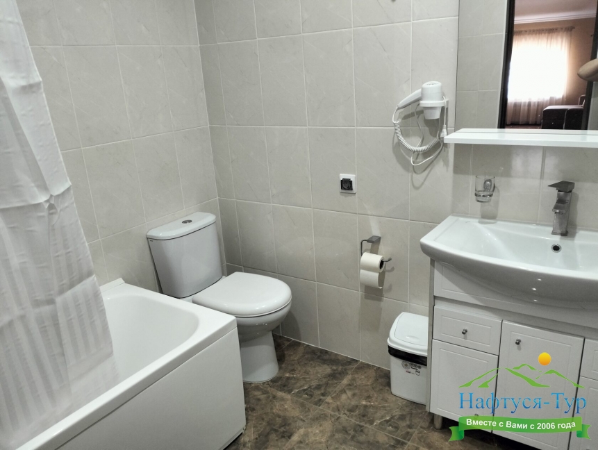 с ванной, туалетные принадлежности, фен