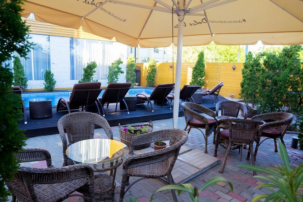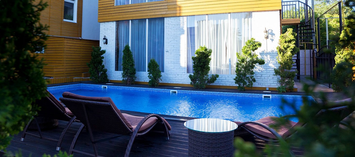 Дольче вита – с высоким уровнем комфорта, для наших гостей на территории нашего комплекса расположен бассейн, который не только позволит вам расслабится, но и получить роскошный загар.