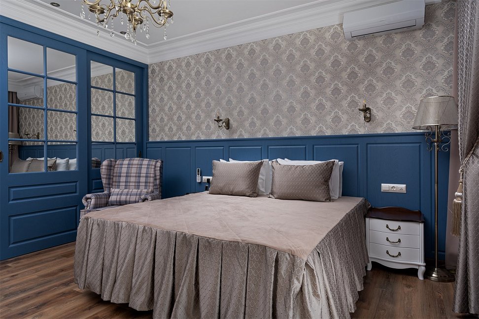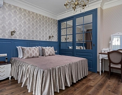 вешалка, диван, зеркало, кровать двуспальная, набор мягкой мебели, прикроватные тумбочки, стол, стулья, шкаф