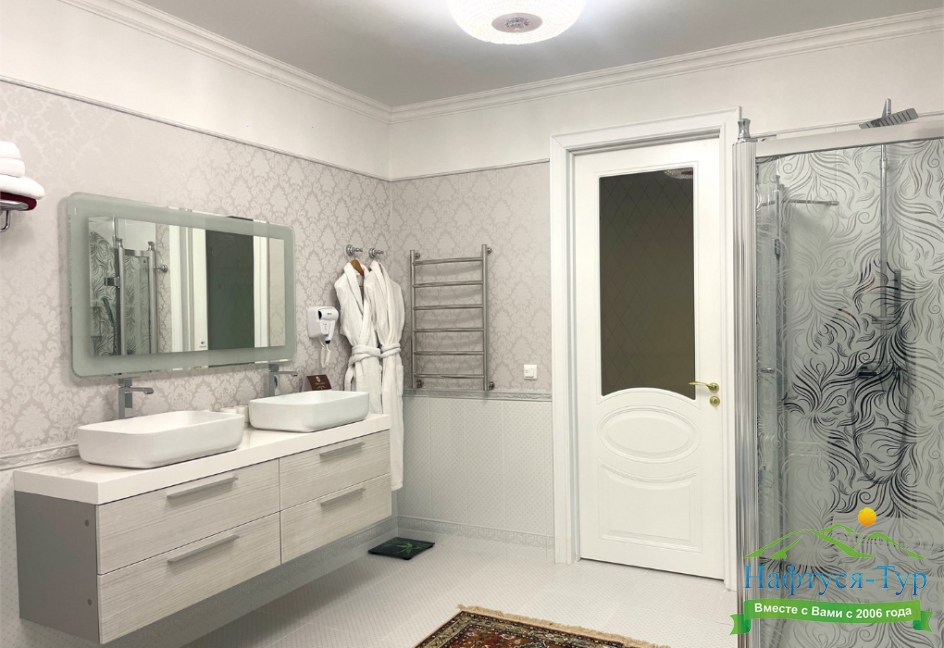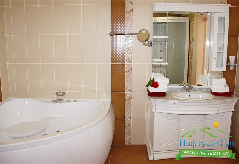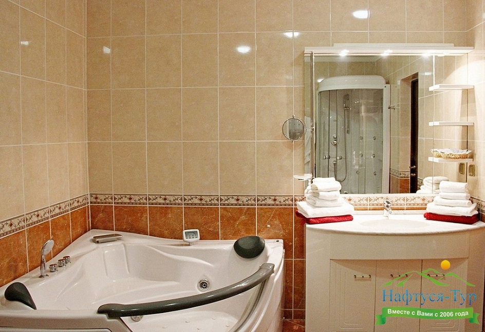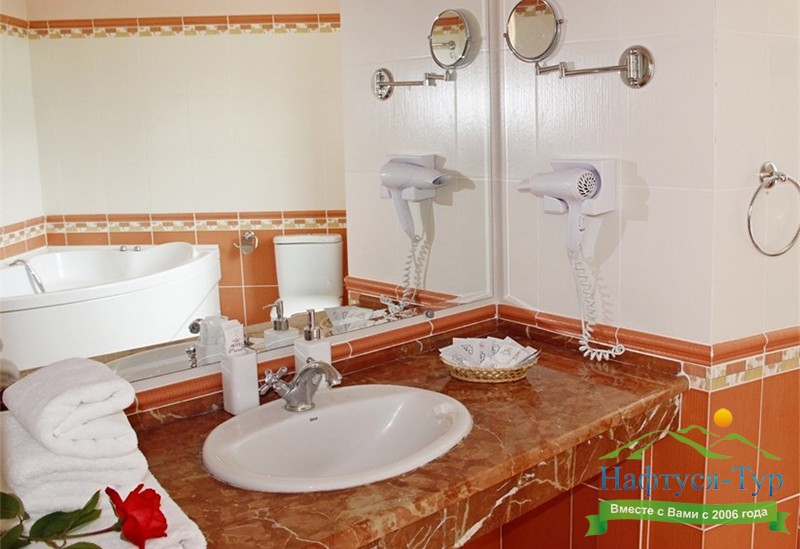 с джакузи, с душевой кабиной, тапочки, туалетные принадлежности, фен, халат