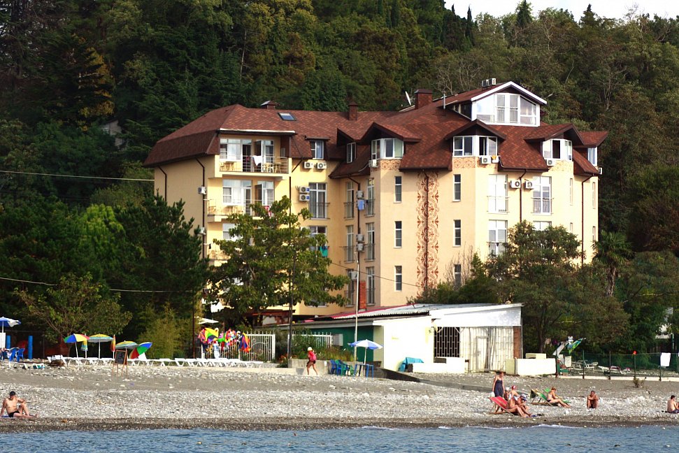 Самолетом до аэропорта Адлер, далее на электропоездом «Ласточка» до остановки «Лазурный берег» (150 м от отеля) или до остановки «Якорная щель», далее на такси до отеля (возможен предварительный заказ отелю о встрече).
